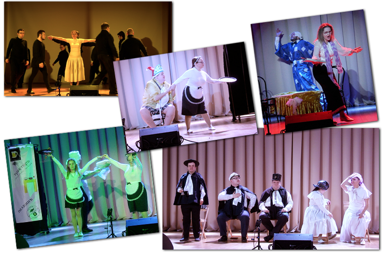 Перед началом зрители увидели музыкальную пантомиму «Прозрение». В этом миниспектакле-тренинге участвовали артисты теата МИРТ, они же воспитанники студии «Театральное искусство для инвалидов», которой руководит педагог ГБУ г. Москвы «Объединение культурных и досуговых центров Северо-Восточного административного округа (ОКЦ СВАО) Георгий Скавитин.